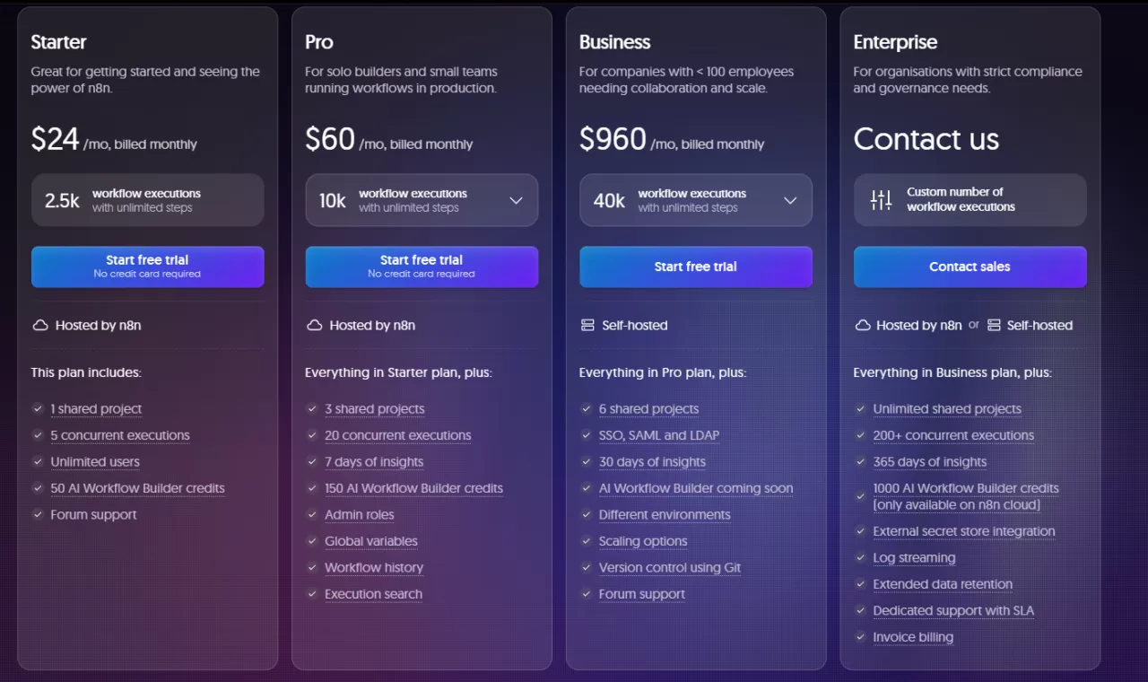 这种情况下,Starter 套餐(约 2.5K executions/月)基本是够用的,非常适合验证期或 1–2 人的小团队。