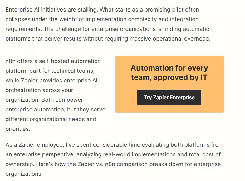 Zapier自己的对比文章也承认 n8n 的自托管控制力是显著差异点,同时指出自托管会带来运维与安全责任。